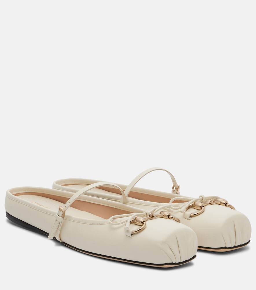 Кожаные балетки с подвеской Horsebit Gucci, Off White