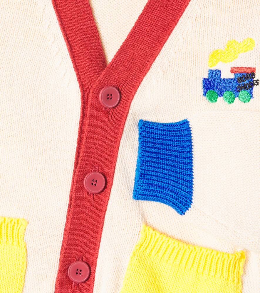Укутайте своего малыша в тепло и уют с помощью кардигана Bobo Choo Choo от Bobo Choses. Этот уютный кардиган в стиле колор-блок, связанный из мягкого хлопка, украшен игривой вышивкой в виде поезда и отделкой в рубчик.