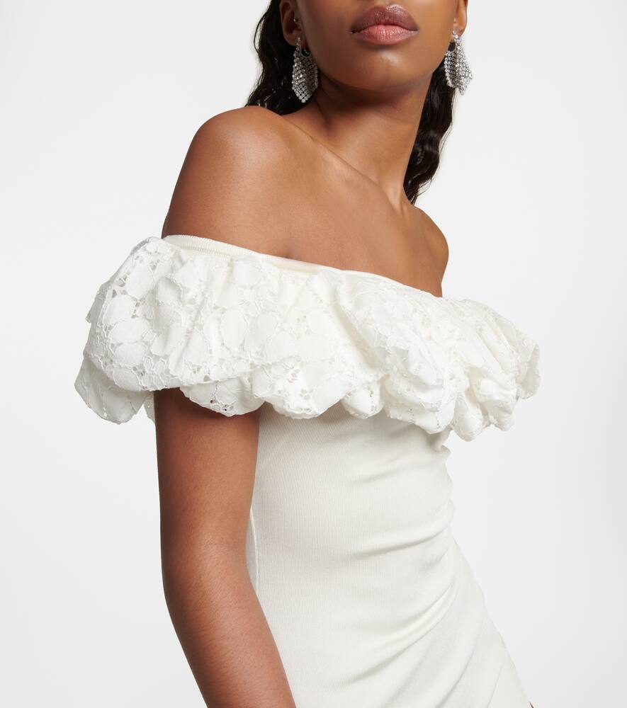 Мини-платье с открытыми плечами и отделкой рюшами Alexandre Vauthier, Off-White