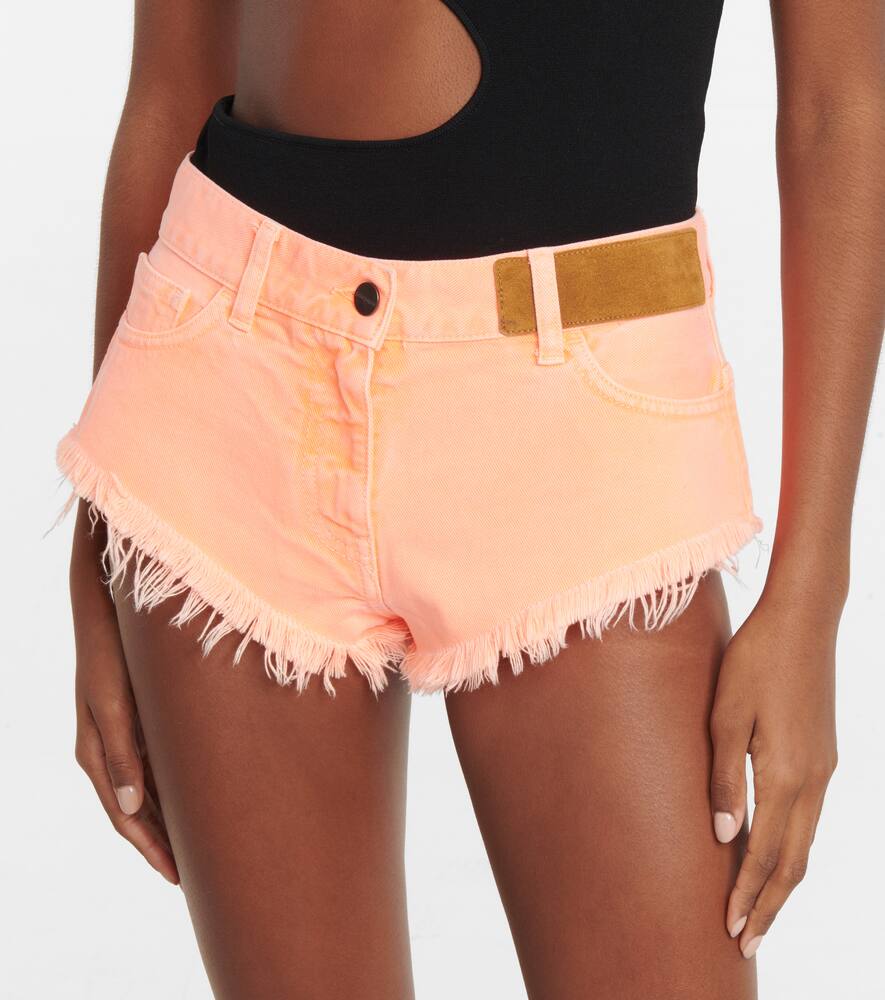Потертые укороченные джинсовые шорты mid-rise Palm Angels, Orange Fluo