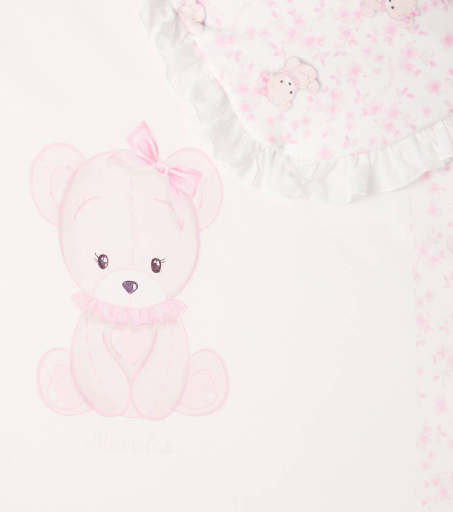 Это одеяло от Monnalisa изготовлено из мягкого хлопка, чтобы обеспечить уют и комфорт. Очаровательный принт с плюшевым мишкой и гофрированная кайма придают изделию особое очарование.