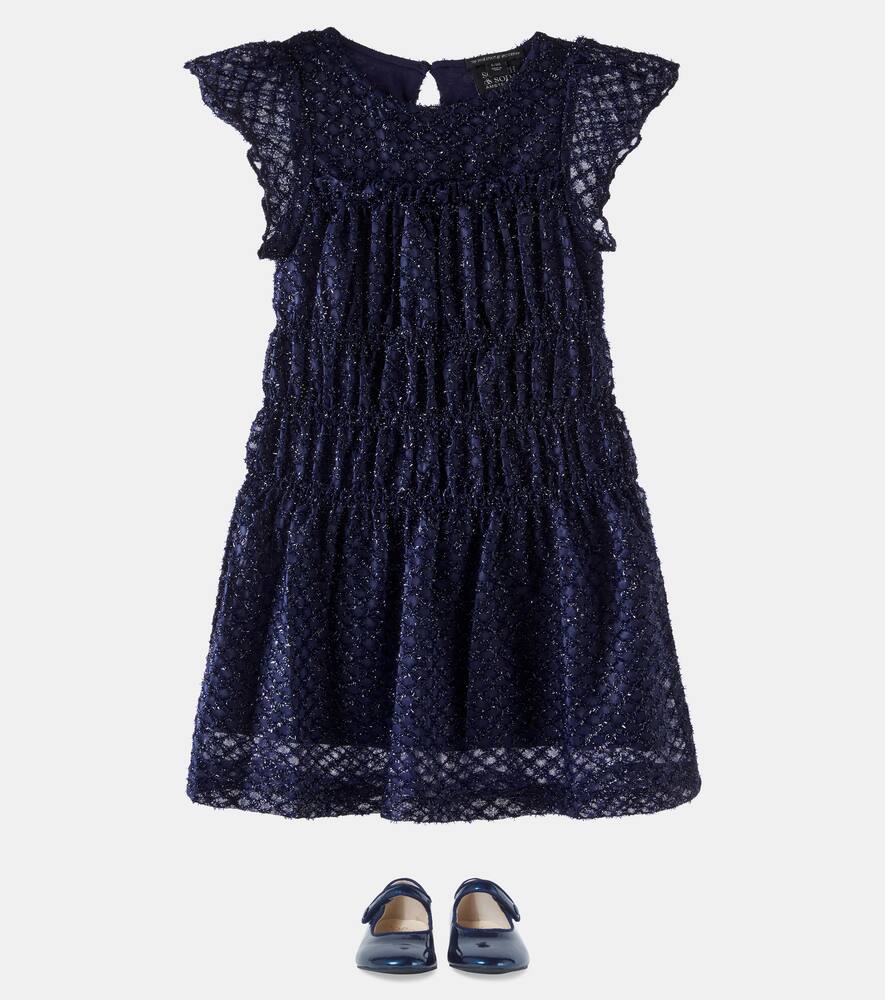 Добавьте немного блеска в гардероб вашего малыша с этим декорированным платьем от Scotch & Soda Kids. Комфортное и блестящее, это темно-синее платье с короткими рукавами и застежкой на пуговицы сзади.