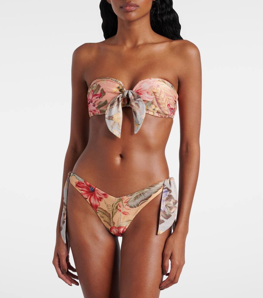 Коко топ бикини с бантом и цветочным принтом Zimmermann, Pink Multi Floral