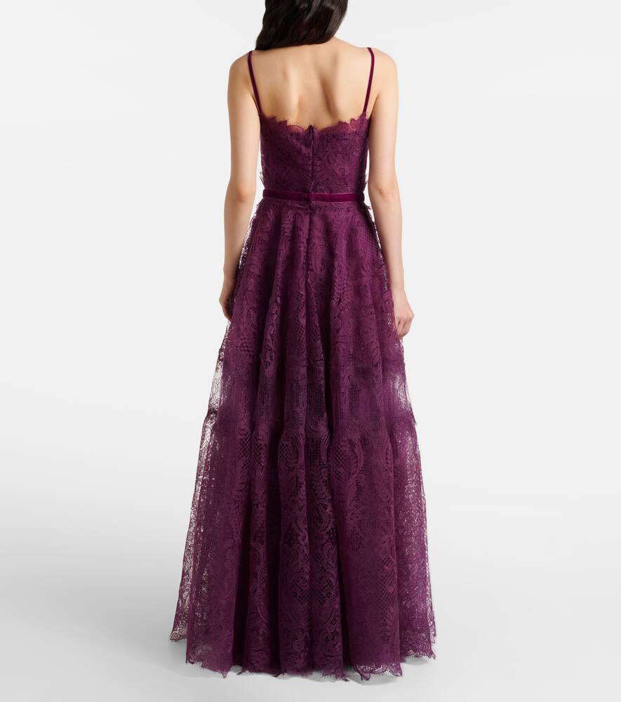 Платье с поясом и кружевом Costarellos, Plum