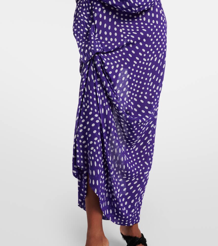 Платье миди из сатина в горох с драпировкой Dries Van Noten, Purple 141 711₽