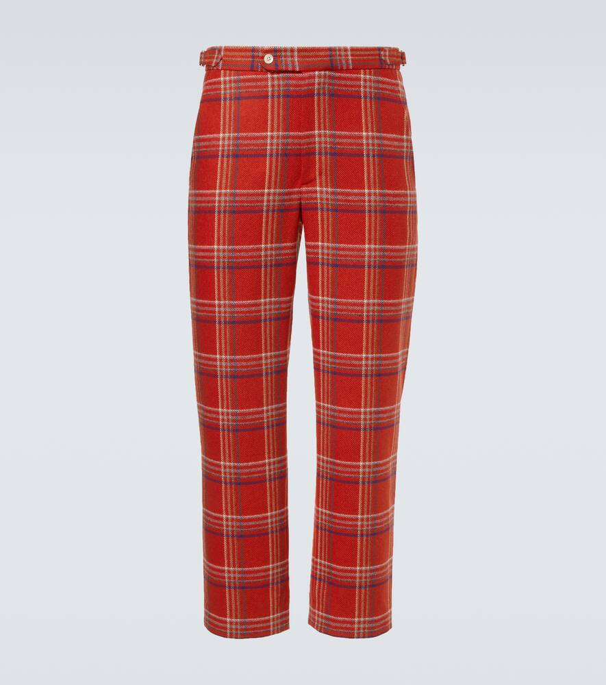 Прямые брюки из шерстяной фланели в клетку Bode, Red