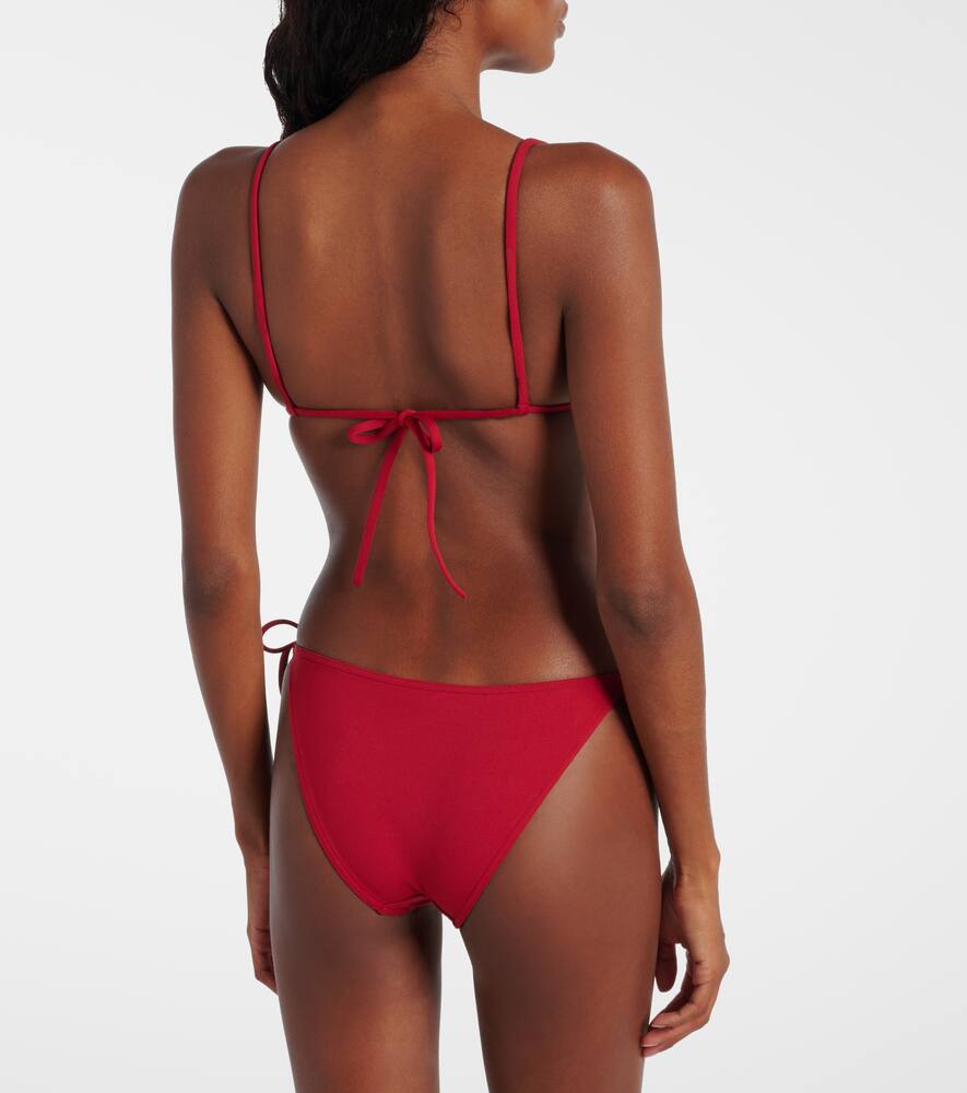 Бикини-топ Mouna от Eres имеет классический треугольный силуэт чашек и тонкие бретельки, которые можно завязывать прямо или через шею. Модель обеспечивает минимальное прикрытие.