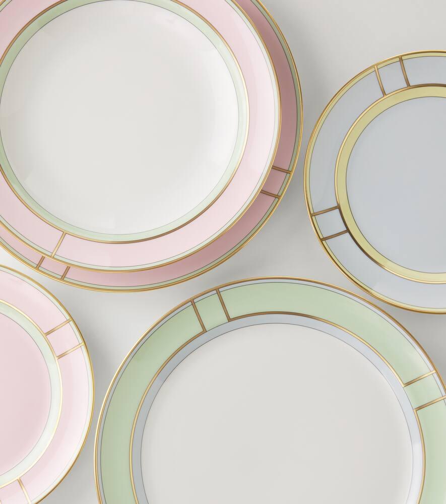 Украсьте свой стол яркими предметами, такими как обеденная тарелка Ginori 1735 Diva, изготовленная из изящного фарфора и дополненная расписным краем.