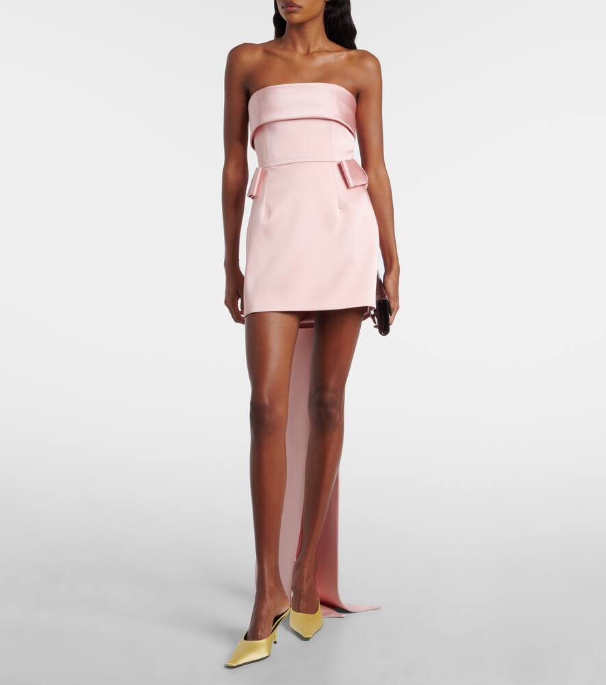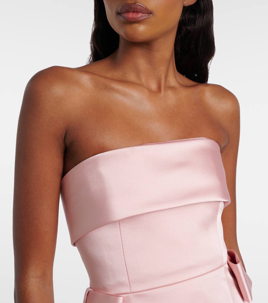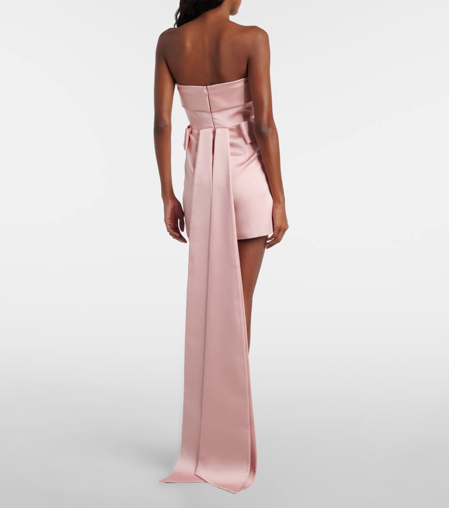 Мини-платье Lalani от The New Arrivals Ilkyaz Ozel отличается атласным силуэтом со шлейфом, ниспадающим каскадом сзади. Модель без бретелек украшена бантами по бокам.