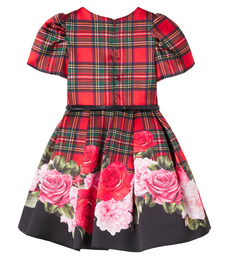 Платье в цветочную клетку Monnalisa, Rosso/Nero