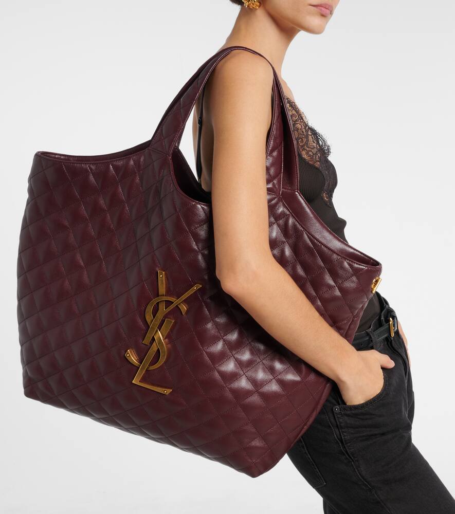 Монограмма YSL, один из самых известных символов моды, состоит из переплетённых инициалов основателя Saint Laurent. Сумка-шоппер Icare Maxi из стёганой кожи украшена узнаваемым мотивом и поставляется со съёмным мешочком на молнии.