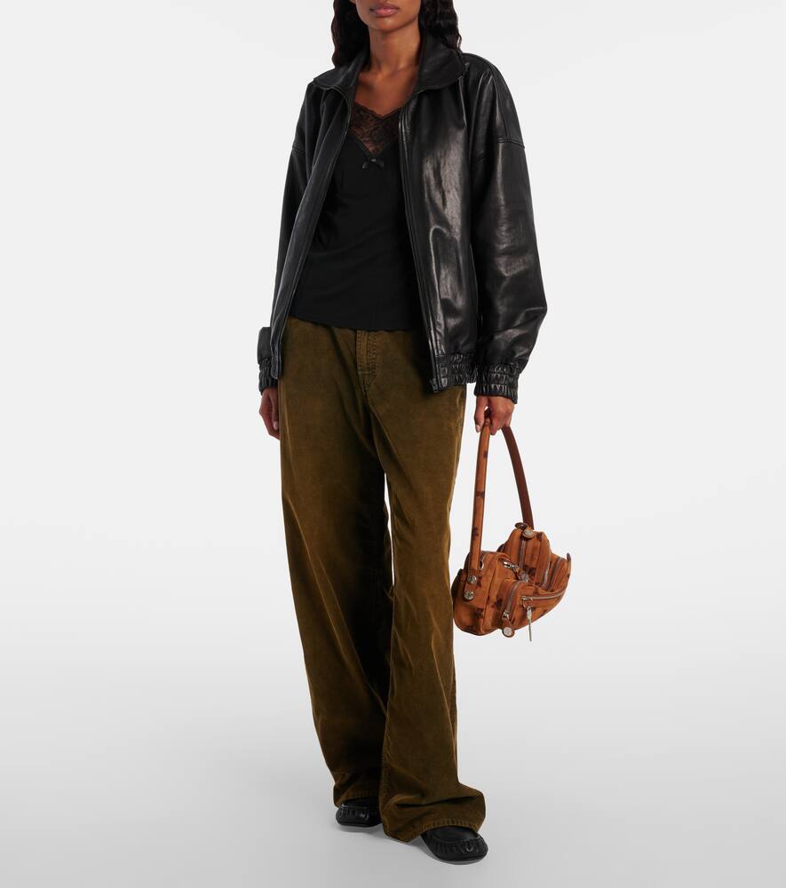 Стокгольмская компания Acne Studios завоевала прочную популярность благодаря своей скандинавской эстетике. Сумка через плечо Camero, изготовленная из замши, имеет структурированный силуэт, украшенный фирменной подвеской-ключом и плюшевым мишкой.