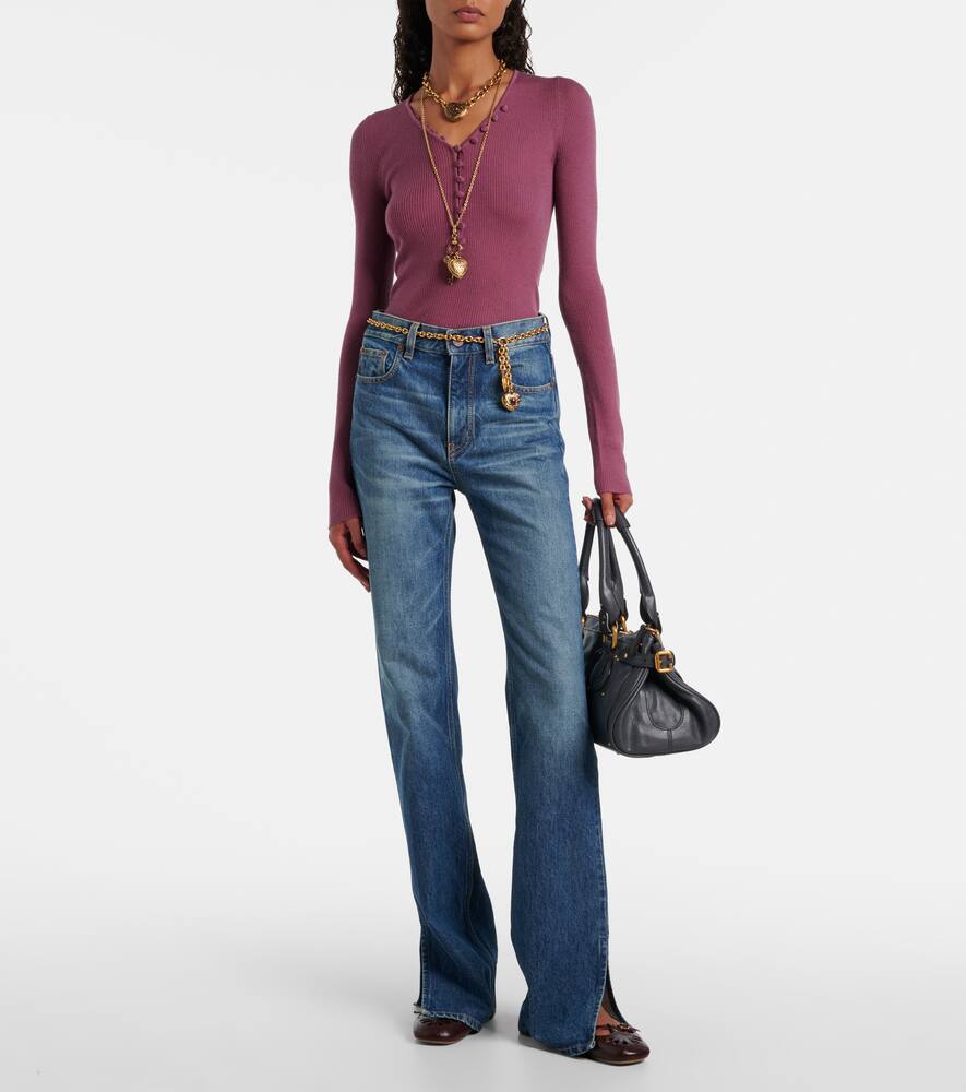 Chloé, известный своей свободолюбивой эстетикой, отличается романтичностью и парижским шармом. Этот топ с длинными рукавами, связанный из чистой шерсти в рубчик, имеет V-образный вырез, отделанный пуговицами в тон.