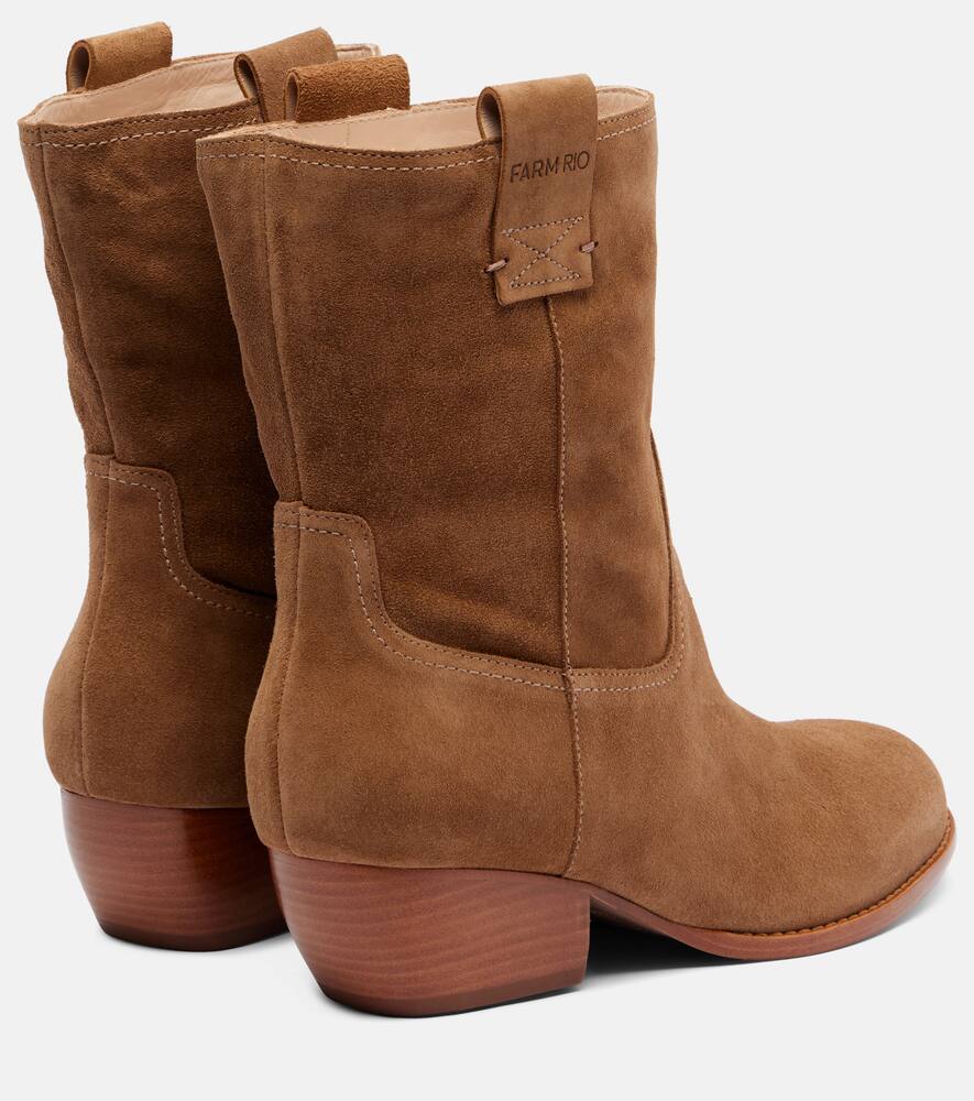 Эти ботильоны Farm Rio из мягкой замши станут вашим незаменимым повседневным вариантом. Модель с круглым носком дополнена тональной строчкой, петлями по бокам и низким наборным каблуком.