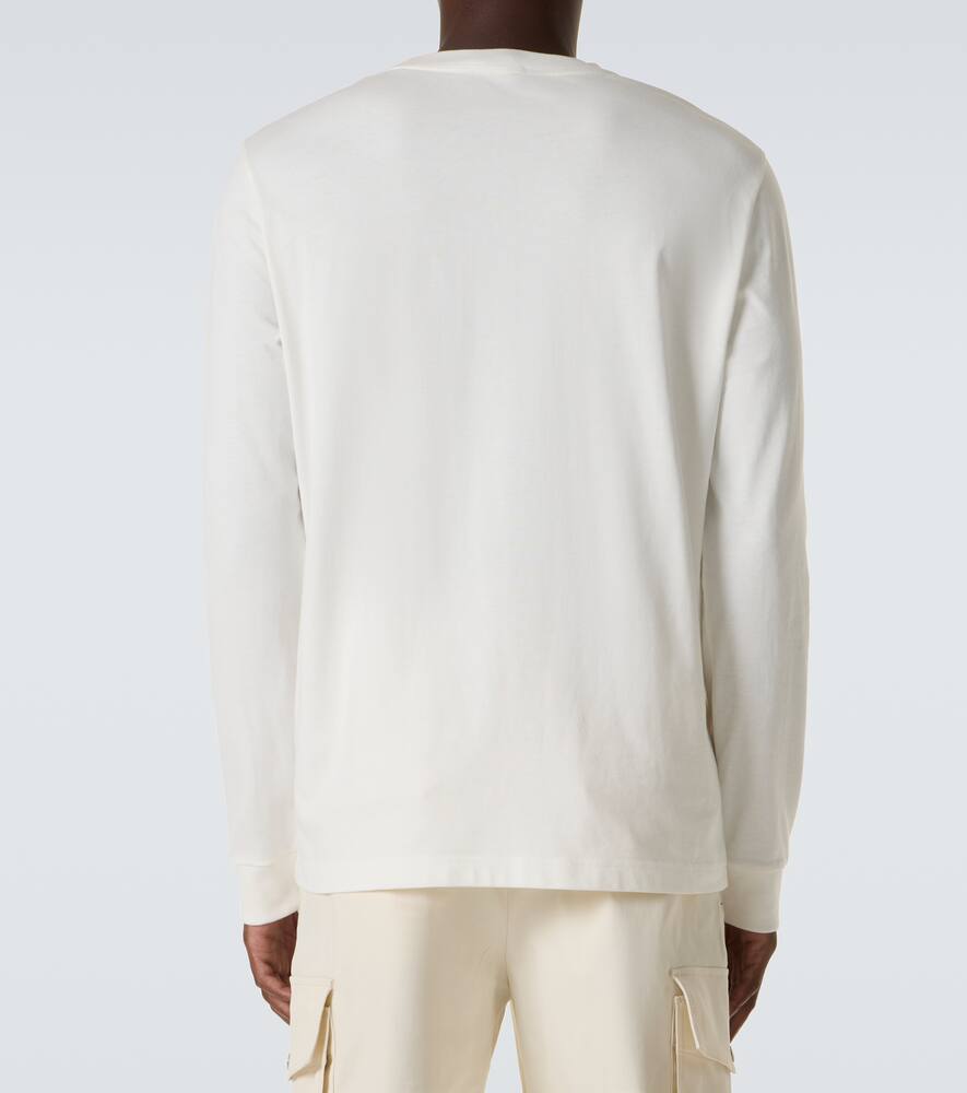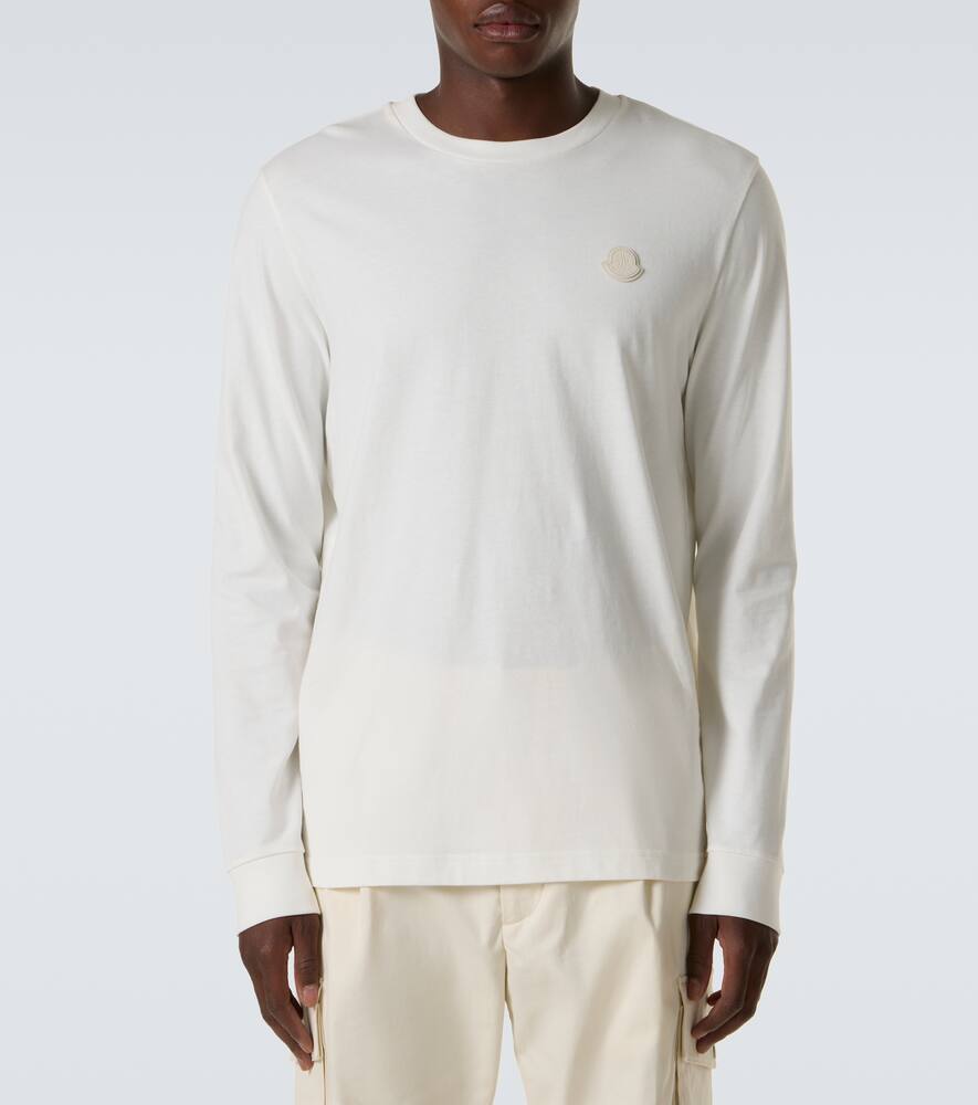 Добавьте нотку роскоши в свой образ для отдыха с этой футболкой с длинными рукавами от Moncler. Белая модель выполнена из хлопкового джерси и украшена культовым логотипом бренда из кожи.