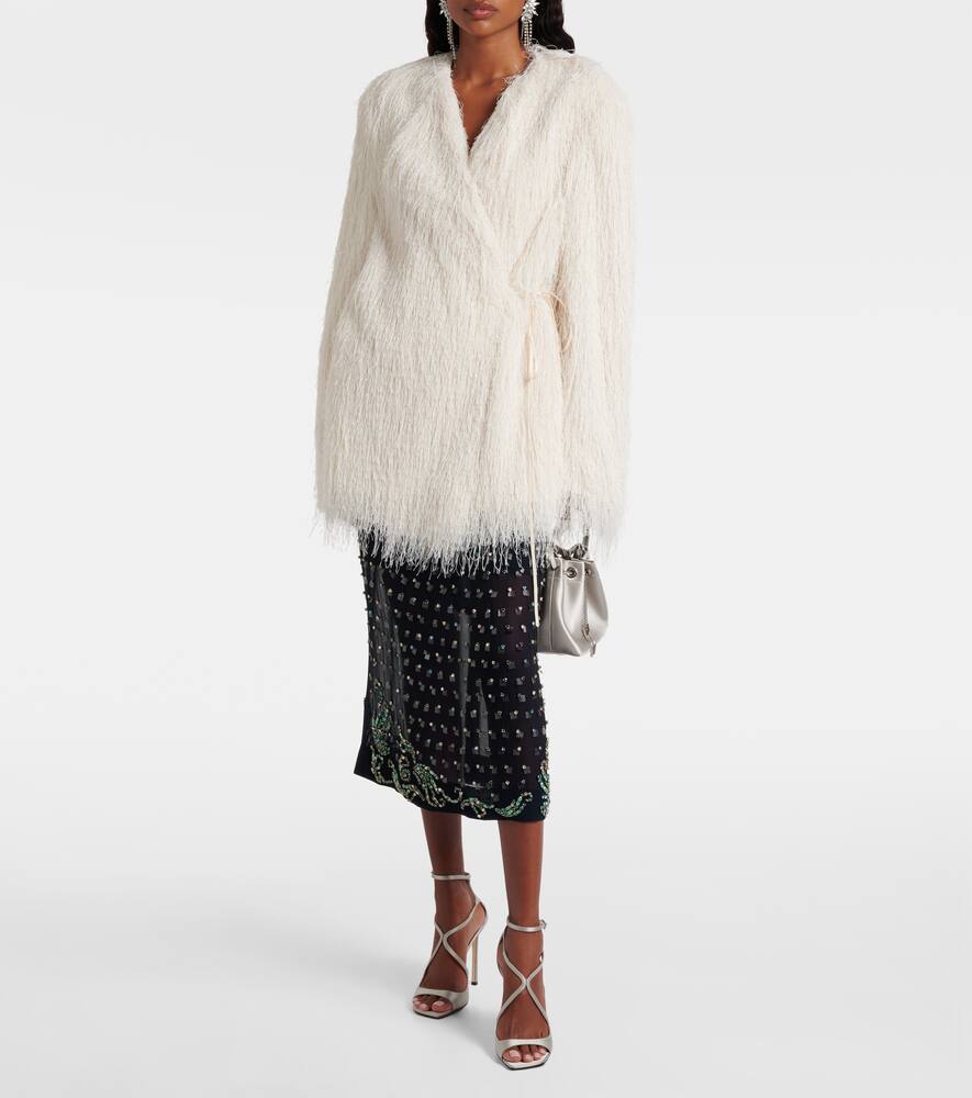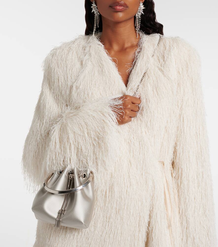 Эта блестящая версия сумки-ведра Bon Bon от Jimmy Choo обеспечит элегантность как на праздники, так и за их пределами. Сумка выполнена из блестящей атласной ткани с фигурной ручкой и цепочным ремешком.