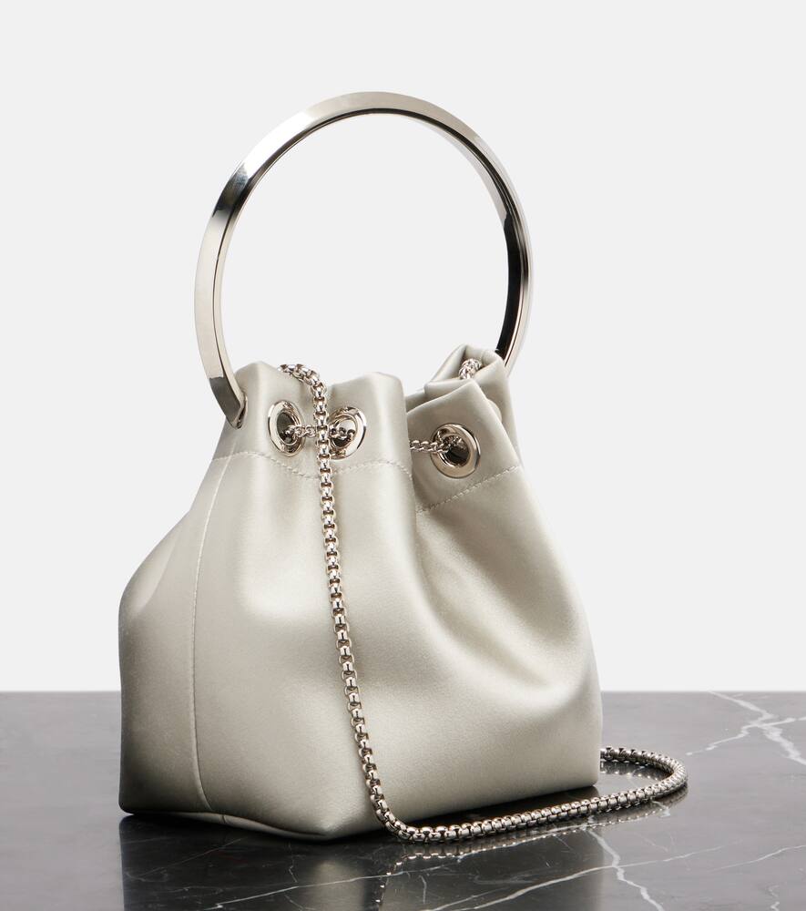 Сатиновая сумочка-ведерко Bon Bon Jimmy Choo, Silver/Silver