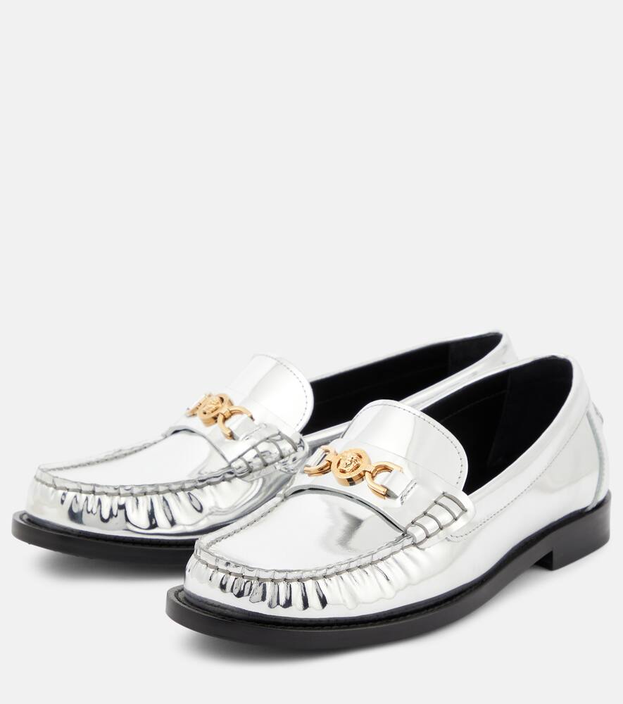 Металлические кожаные лоферы Versace, Silver-Versace Gold