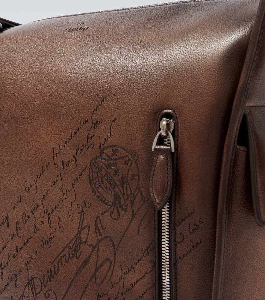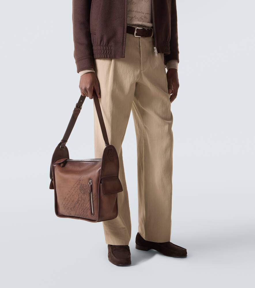 Разработанная Berluti в 1990-х годах кожа Venezia проходит особый процесс дубления, благодаря которому приобретает фирменную гибкость и мягкость. Сумка через плечо Périple дополнена регулируемым ремешком с пряжкой и фирменным мотивом Scritto.
