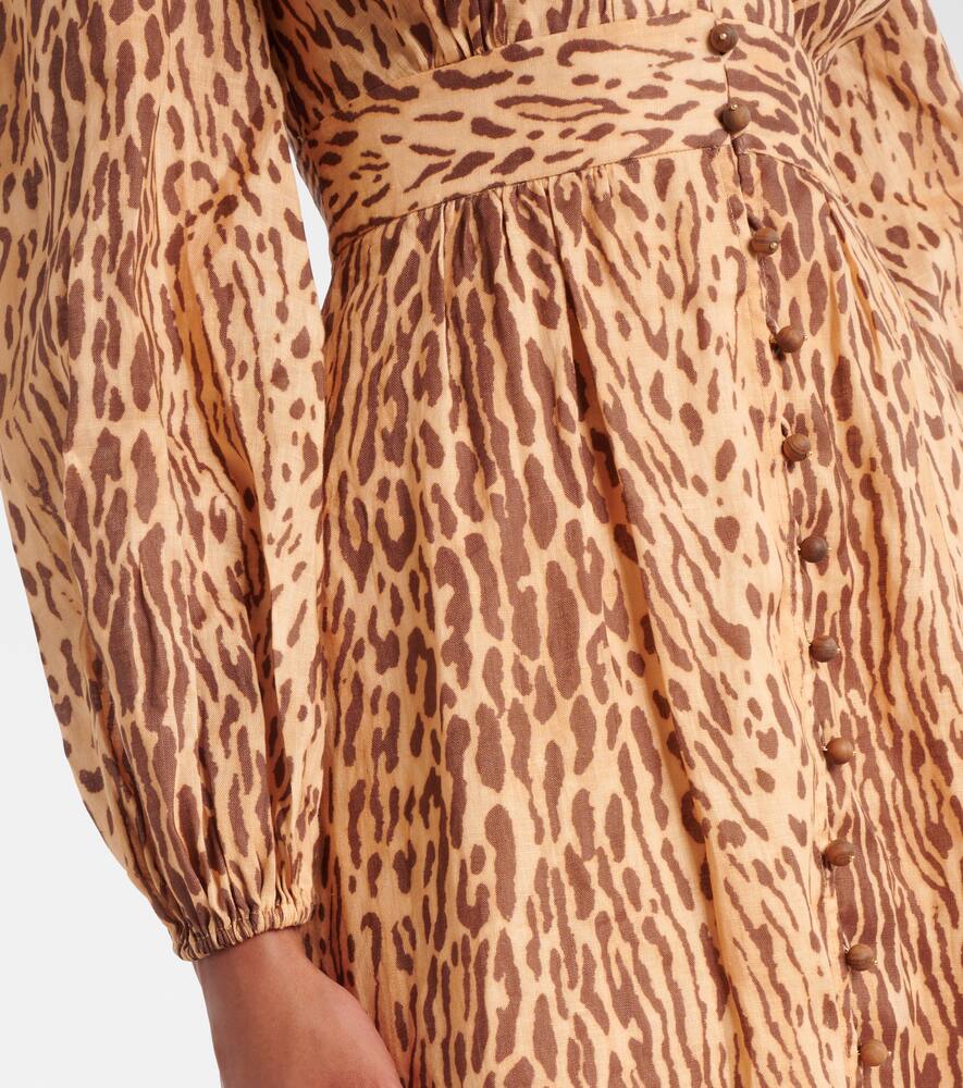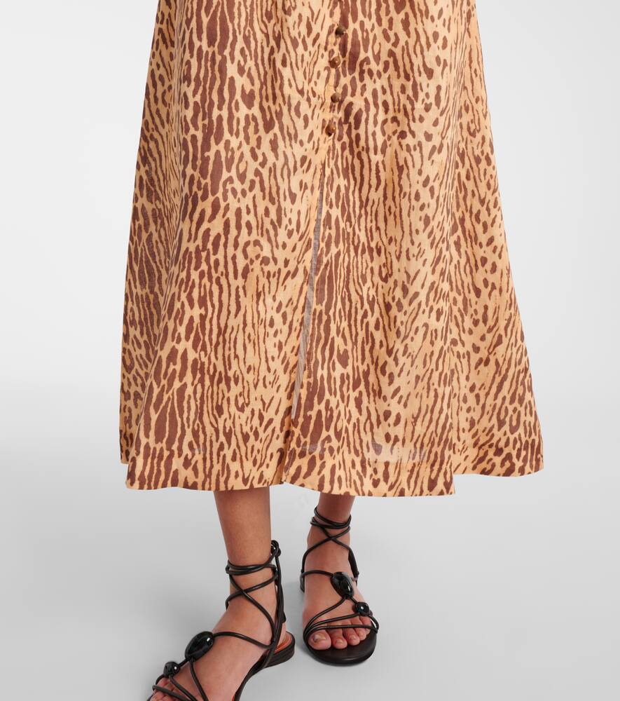 Платье миди из льна с леопардовым принтом Cascadian Zimmermann, Tan Leopard