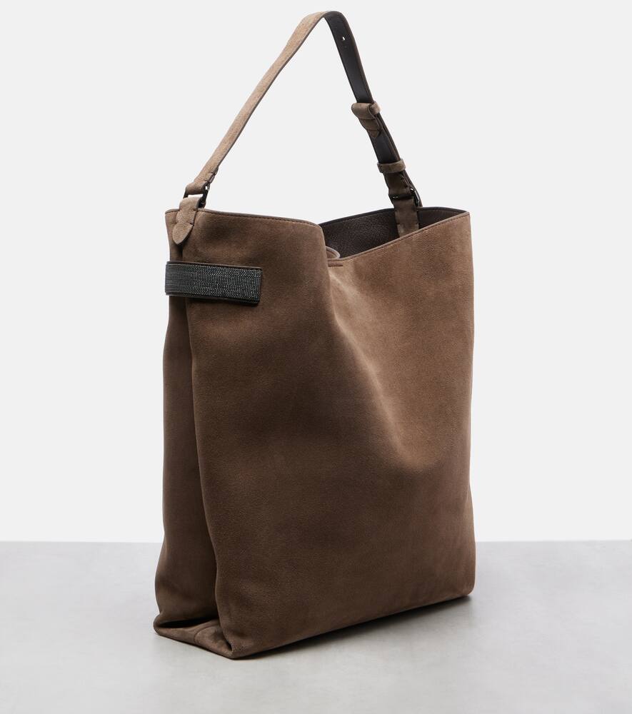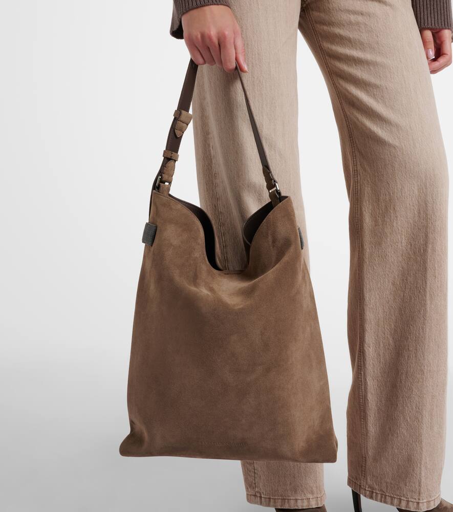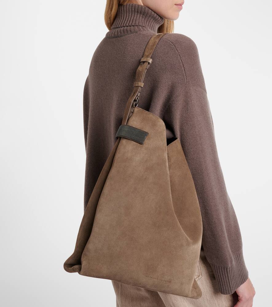 Изделия Brunello Cucinelli создаются в Соломео, средневековой деревушке, где искусство и традиции вплетены в каждое изделие. Эта сумка через плечо свободного силуэта выполнена из мягкой замши.