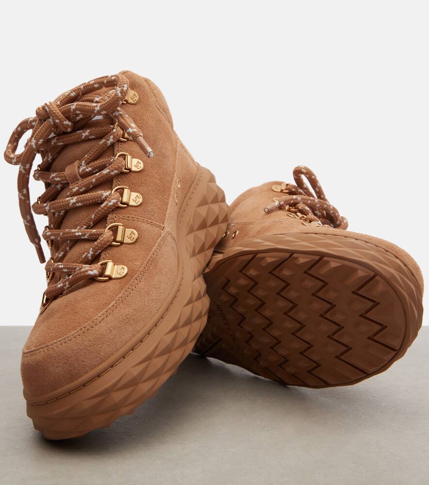 Гламур, оптимизм и радость определяют каждую модель Jimmy Choo. Ботильоны Diamond Maxi Hike F изготовлены из замши и оснащены подошвой на платформе.
