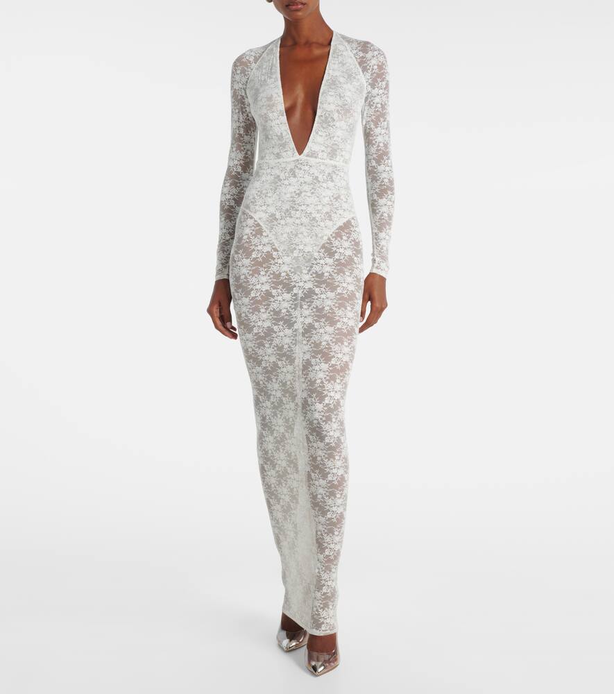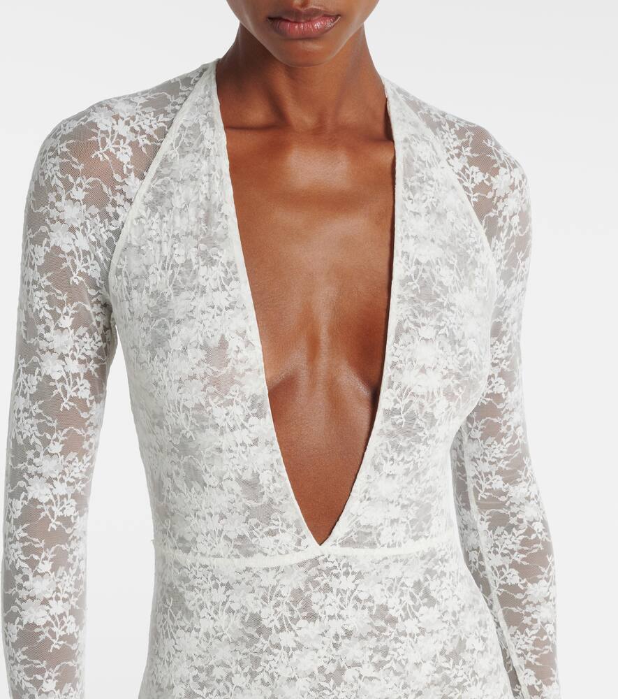 Это свадебное платье Alex Perry, выполненное из тонкого цветочного кружева с прозрачной отделкой, отличается смелостью и современным стилем. Встроенные трусики и шлица на молнии сзади делают этот элегантный образ просто ошеломляющим.