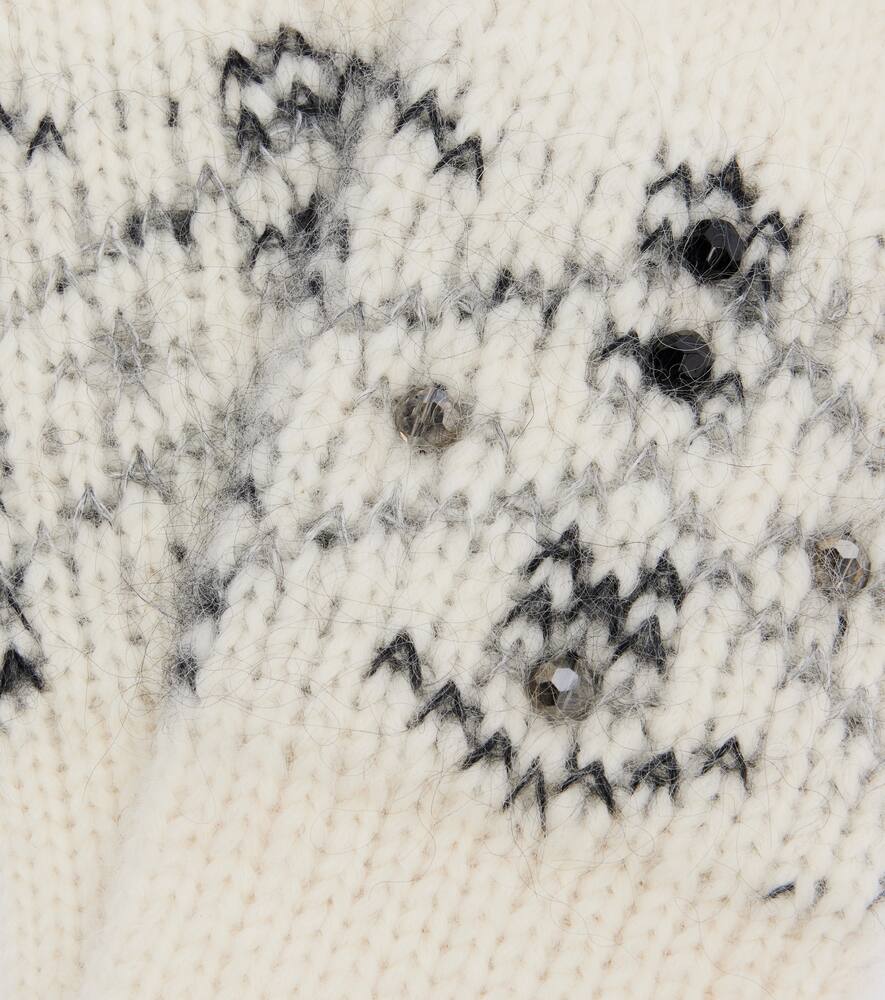 Украшенные перчатки из смеси альпаки и шерсти Moncler, White