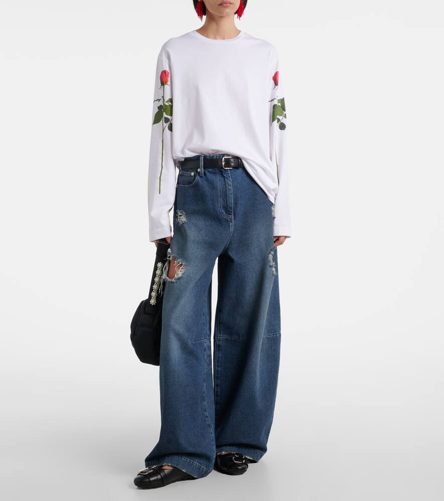 Simone Rocha привносит свой фирменный романтический шарм в эту повседневную футболку с длинными рукавами. Модель выполнена из классического белого хлопкового джерси и украшена двумя принтами в виде роз вдоль рукавов.