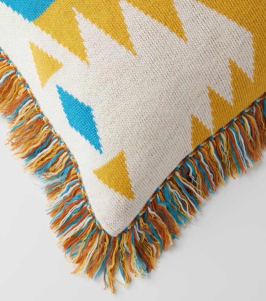 Подушка Icon от Alanui украшена тем же жаккардовым узором, что и знаменитый кардиган бренда. Изготовленная из шерсти, она дополнена отделкой в виде бахромы.