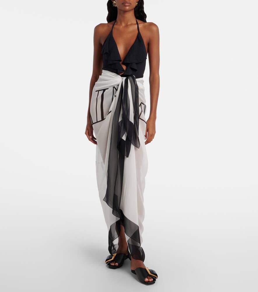 Оливье Рустен вдохнул новую жизнь в Balmain, отдавая дань уважения кутюрному наследию дома и адаптируя его к современным тенденциям. Эта полупрозрачная пляжная накидка из чистого шёлка украшена двухцветным принтом Balmain Couture.