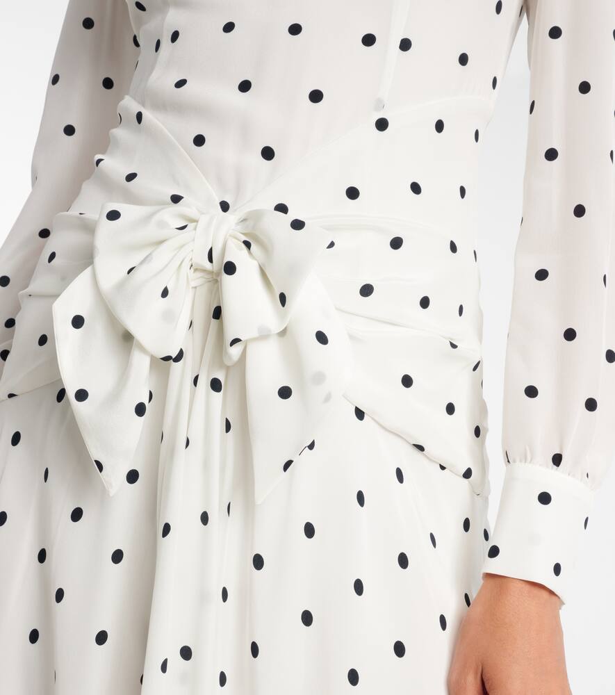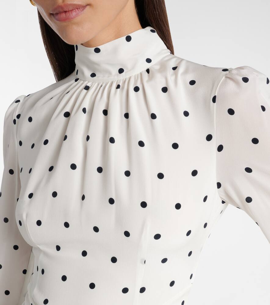 Платье миди из шёлка в горошек Alessandra Rich, White-Navy Blue
