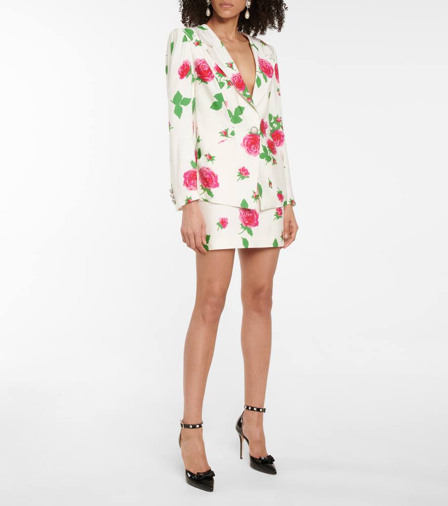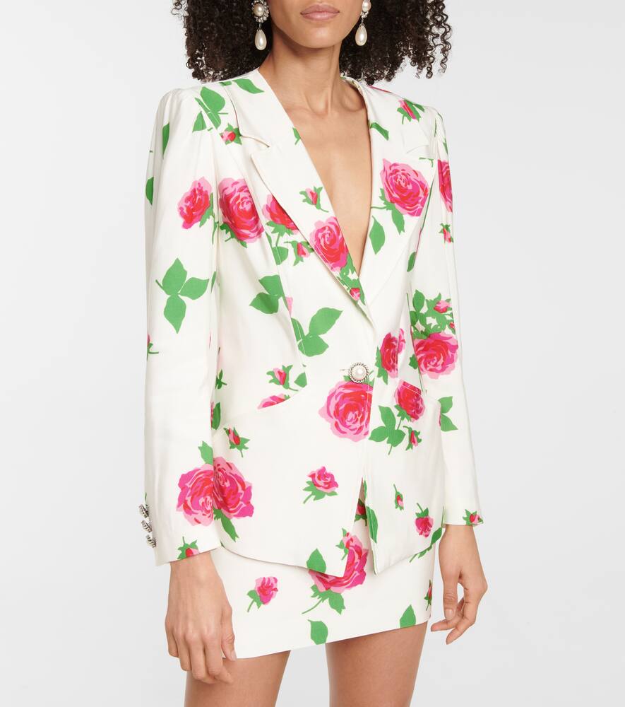 Задайте тон летним вечеринкам с белым блейзером с розовым принтом от Алессандры Рич. Он изготовлен в Италии из фая и имеет классический силуэт с подкладкой на плечах, подчеркивающей фигуру, и элегантной застёжкой на пуговицы с искусственным жемчугом. Дополните комплект подходящей мини-юбкой.