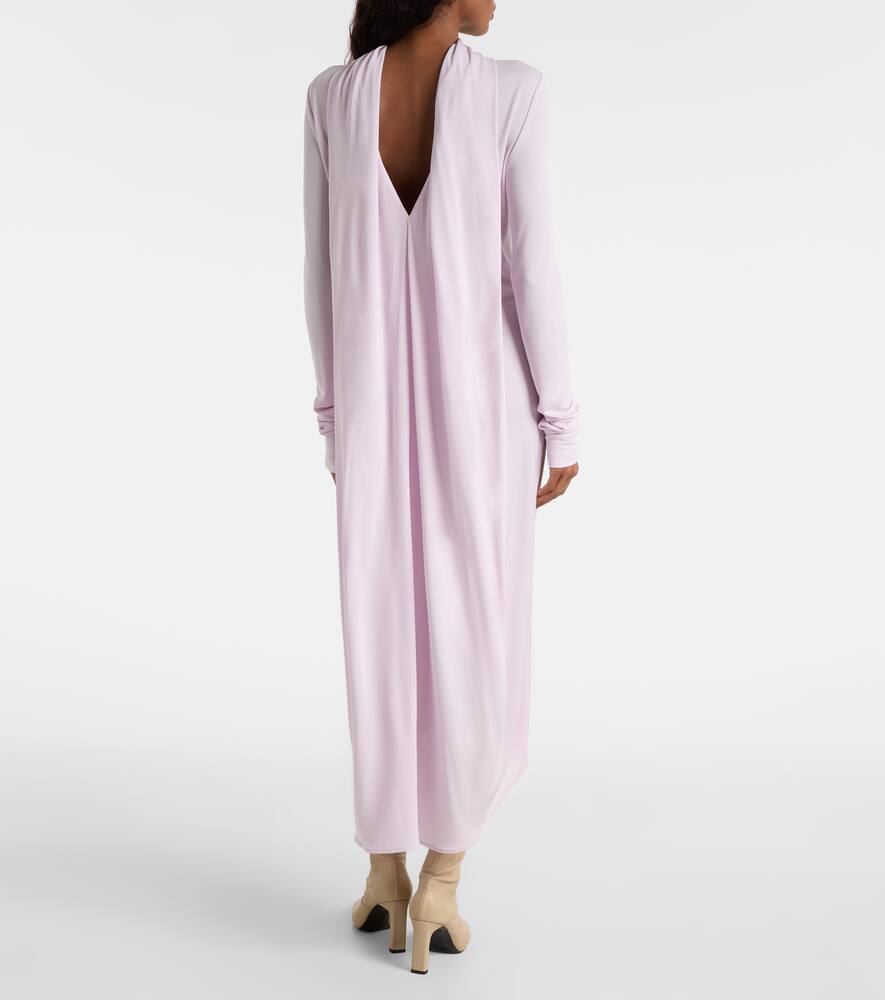 Отдавая предпочтение минималистичной эстетике, Toteme предлагает невероятно практичные модели, например, это миди-платье. Модель с длинными рукавами выполнена из мягкого джерси, а открытая спина украшена драпировками.