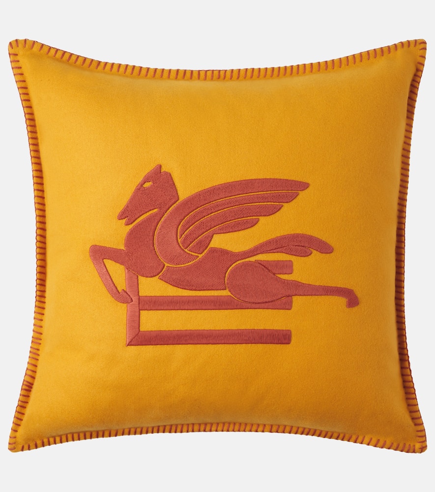 Etro вдохнёт новую жизнь в ваш дом благодаря своей коллекции роскошных и оригинальных товаров для дома. Подушка Ribot изготовлена из мягкой шерстяной ткани и украшена рельефным изображением культового Пегаса.