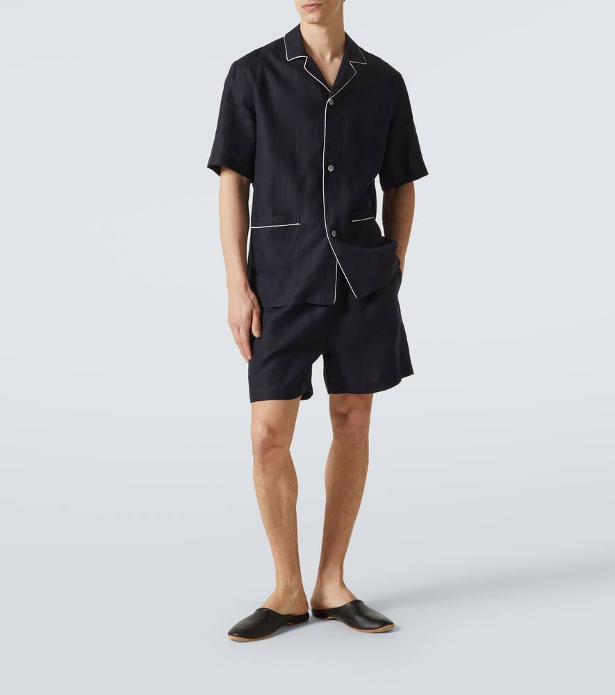 Эти свободные пижамы Zegna из дышащего льна идеально сочетают в себе комфорт и изысканность. Рубашка с короткими рукавами и застежкой на пуговицы дополнена накладными карманами, а шорты в тон с удобным эластичным поясом и застежкой на пуговицы.