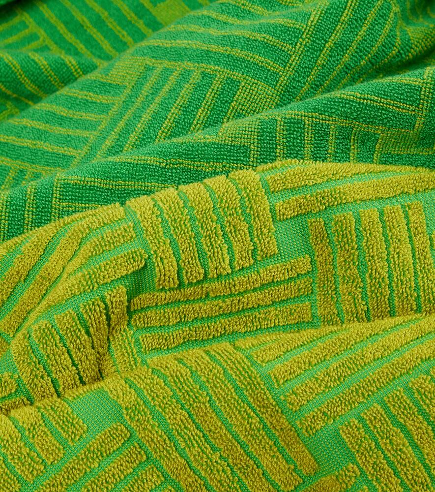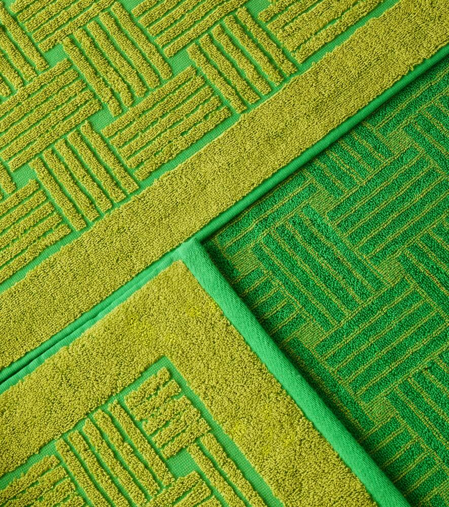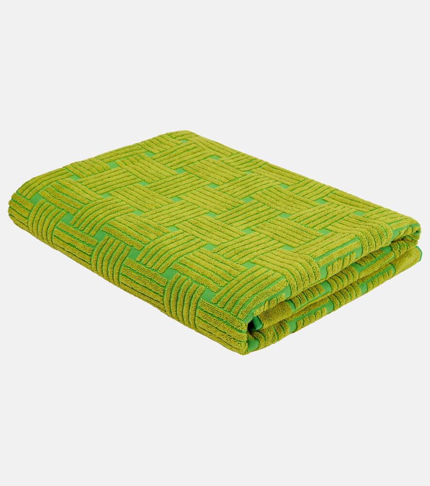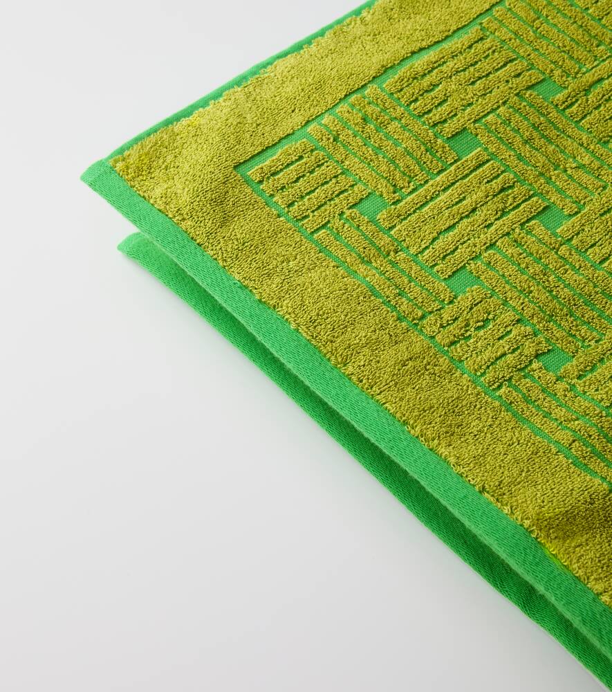 Нет другого цвета, который бы сразу говорил о Bottega Veneta, кроме ярко-зелёного, как на этом полотенце. Это изделие выполнено из хлопка с тактильной жаккардовой интерпретацией узора Intreccio.