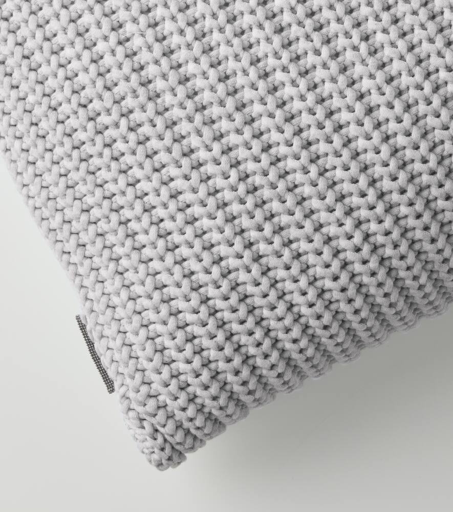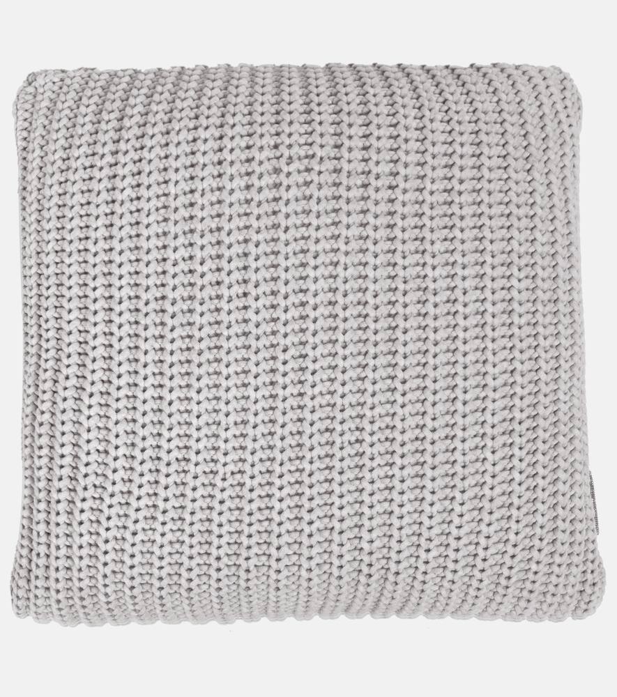 Эта серая подушка размером 37 х 37 см от Brunello Cucinelli Home связана в Италии из пряжи на основе хлопка.