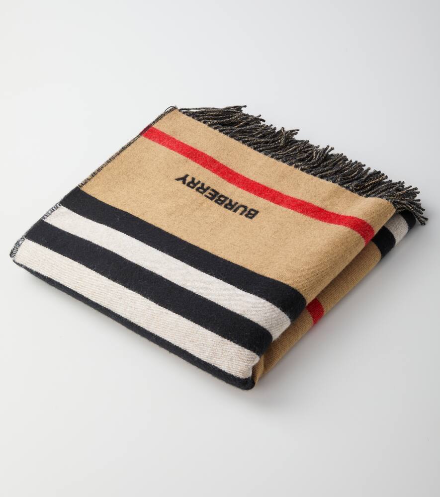 Поклонницы Burberry обязательно захотят обновить свой домашний гардероб этим пледом Icon Stripe. Он сшит из кашемира и шерсти, обработан ворсинками для невероятной мягкости и отделан бахромой.