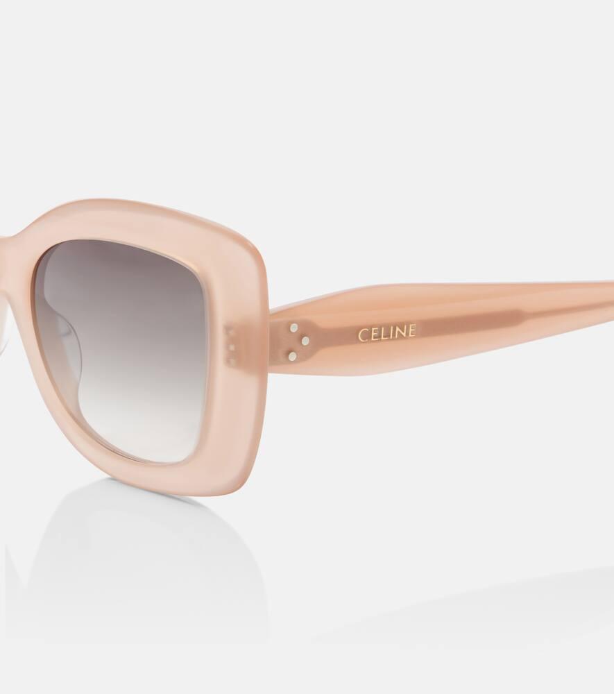 Солнцезащитные очки Celine 3 Dots кошачий глаз от Celine Eyewear, изготовленные из розового ацетата, с градиентными линзами. Дизайн дополнен контурной оправой и золотистыми надписями бренда на заушниках.
