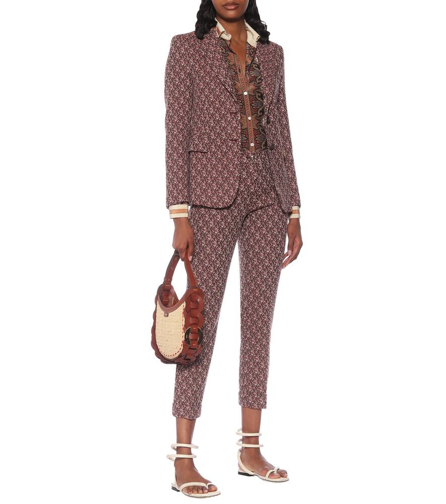 В интерпретации ETRO классические брюки по-прежнему сохраняют фирменное богемное очарование бренда. Эта пара, украшенная мелким узором пейсли, выполнена из шерсти для создания тактильных ощущений. Экспериментируйте с контрастными принтами этим летом, сочетая их с шёлковой блузкой с узором.