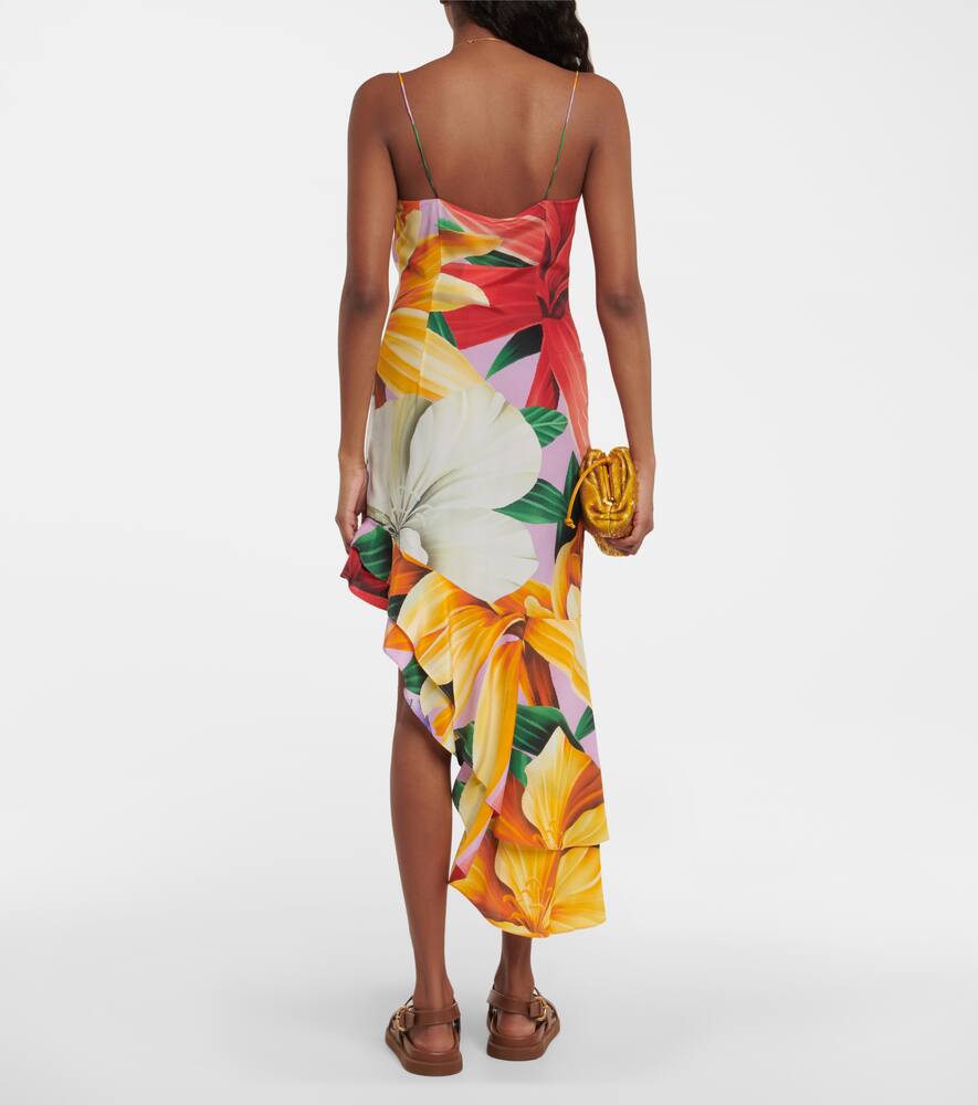 Это платье Etro, сшитое в Италии из чистого шёлка, имеет приталенный силуэт без рукавов. Платье украшено разноцветным принтом по всей поверхности и имеет длину миди с асимметричным подолом и оборкой.