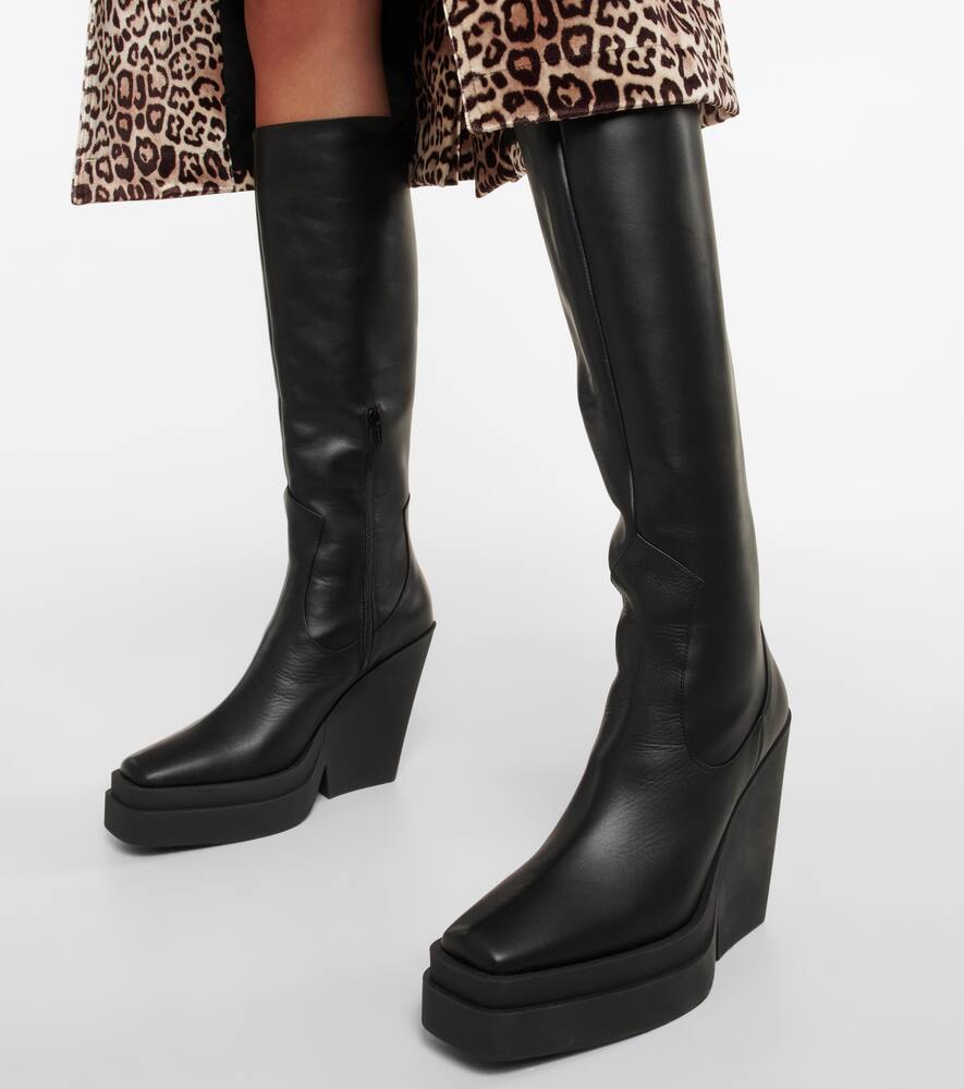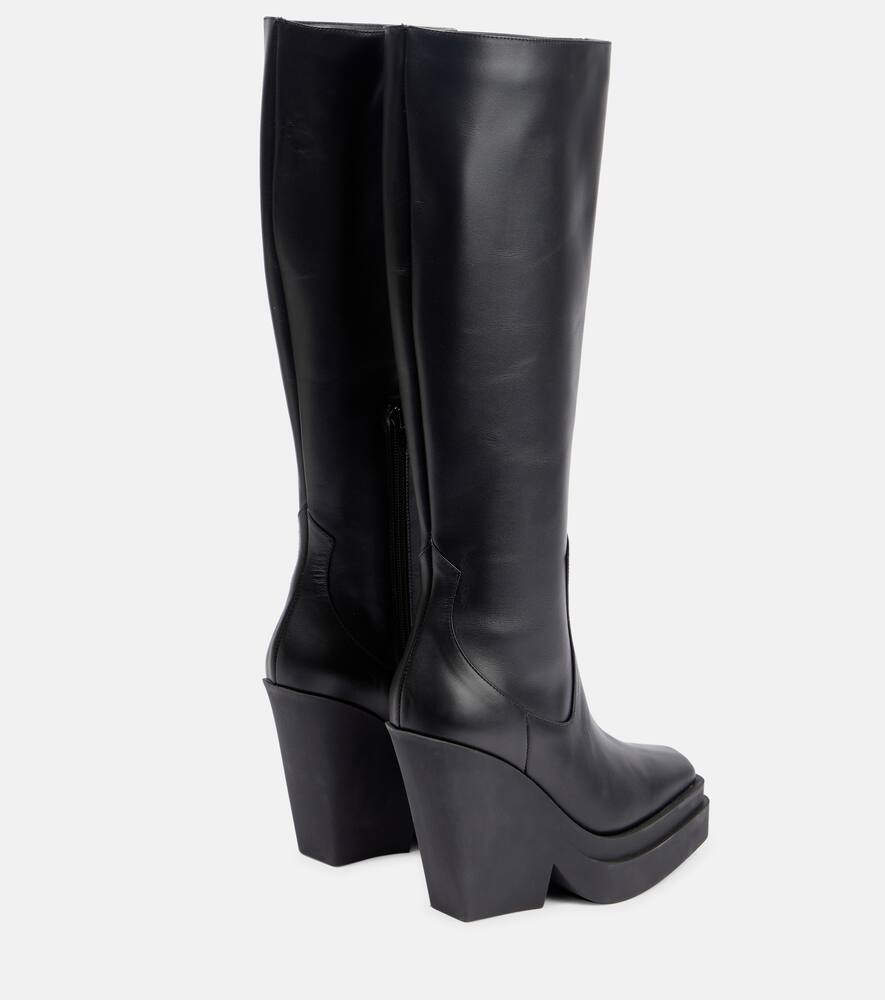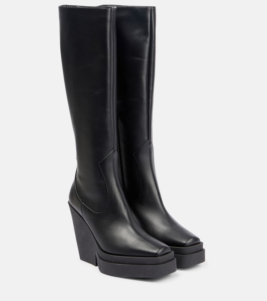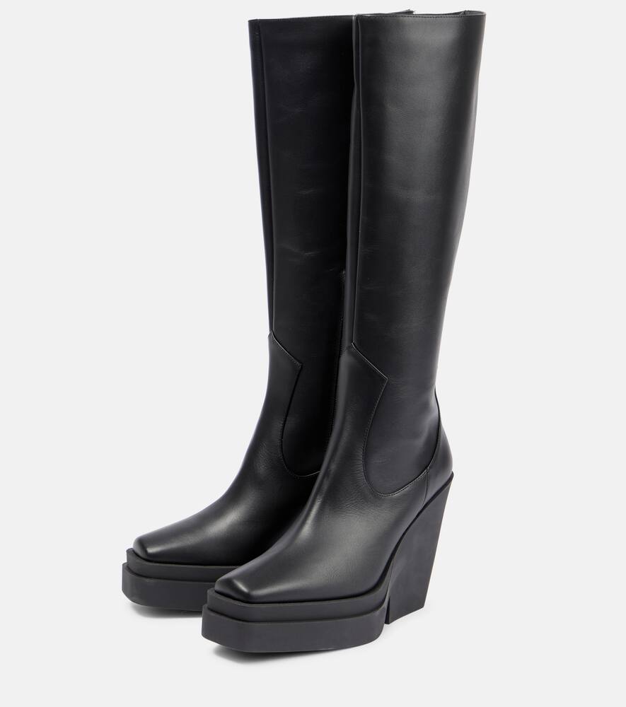 Сапоги Gia 14 до колена от Gia Borghini с верхом из телячьей кожи и резиновой подошвой на платформе. Элегантный дизайн с квадратным носком и угловатым каблуком-танкеткой.