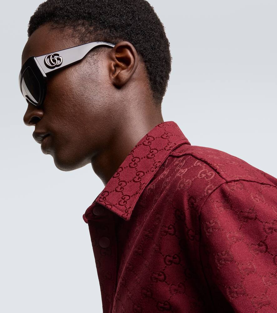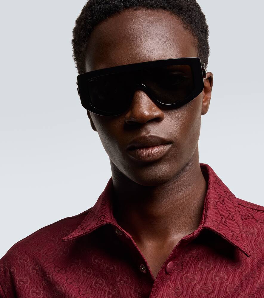 Эти большие солнцезащитные очки с плоской верхней частью в фирменном стиле Gucci дополнят ваш дневной образ. Изготовленные в Италии из чёрного ацетата, они украшены тональной отделкой в виде двойной буквы G на заушниках.