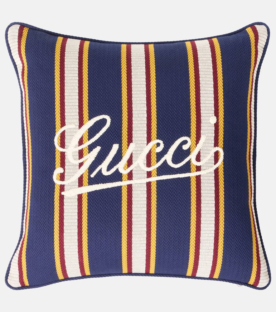 Полосатая хлопковая подушка с логотипом Gucci 93 613₽
