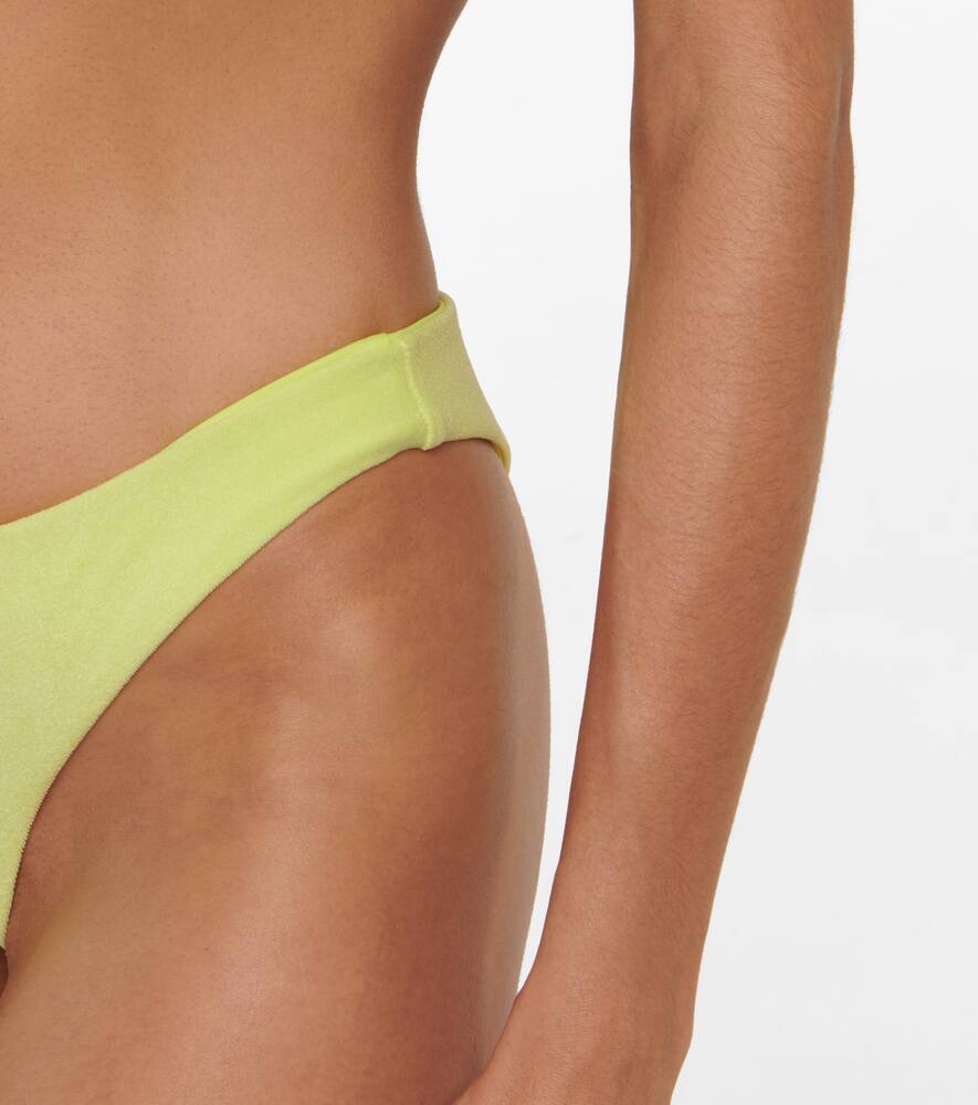 Jade Swim представляет обновлённую модель плавок-бикини Most Wanted из жёлтой махровой ткани, сочетающую в себе инновационность и минималистичный дизайн. Идеально подходит для тех, кто ищет минимальное покрытие, и может носиться как с низкой посадкой, так и с высокой посадкой на талии.