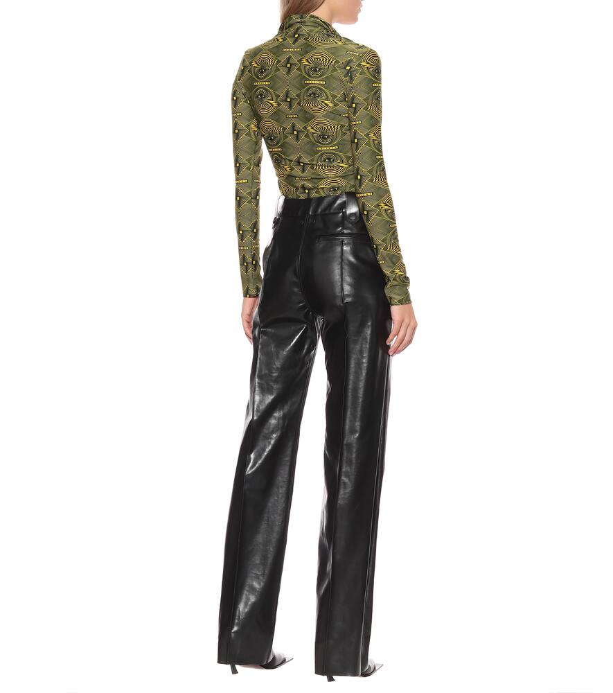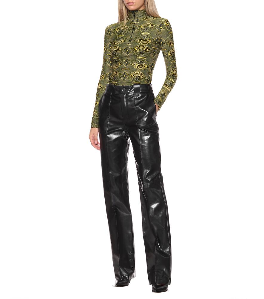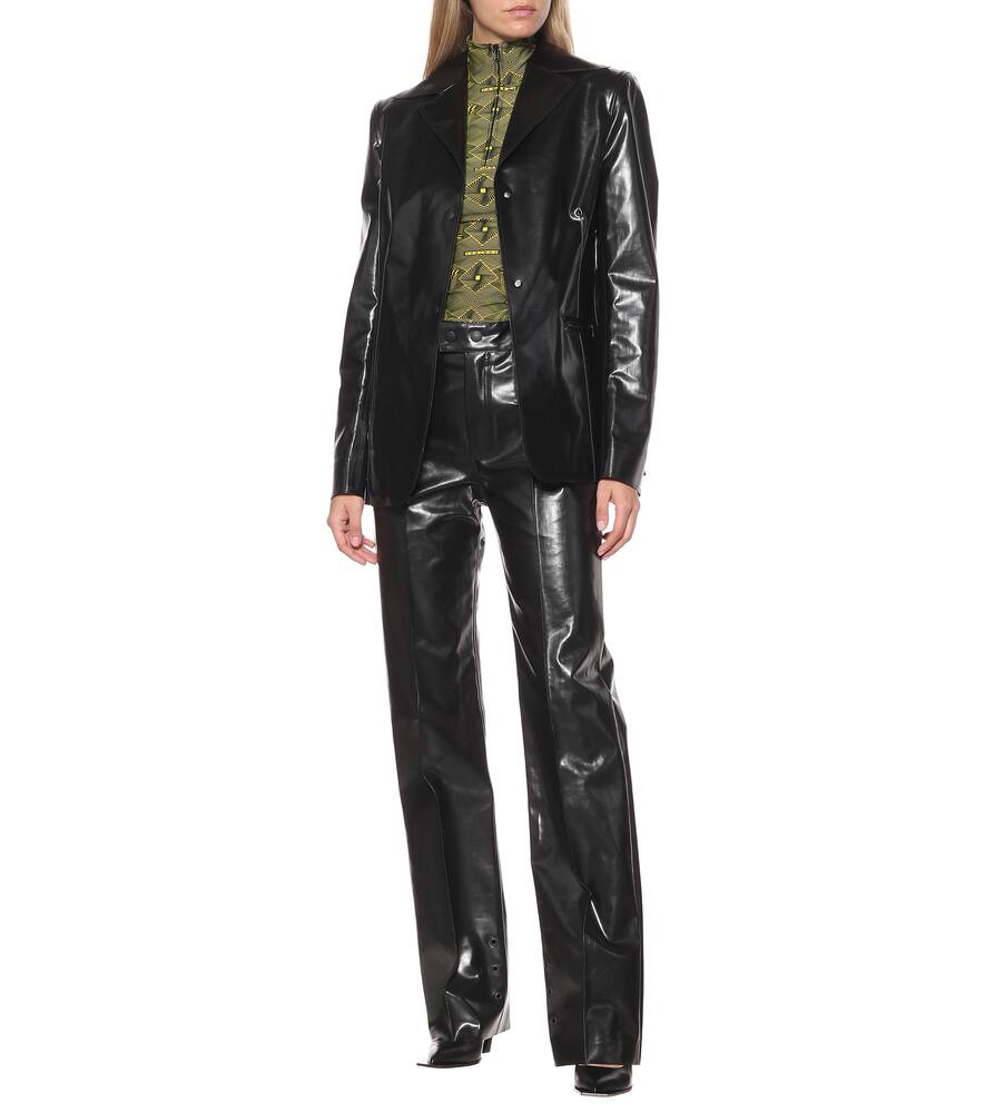Ощутите один из главных трендов сезона — готовую одежду из искусственной кожи — с этими чёрными брюками от Kwaidan Editions. Изготовленные во Франции из искусственной кожи, они имеют расклешённый силуэт, плавно расширяющийся к низу. Дополните их элегантными деталями, чтобы создать непринуждённый образ в стиле 90-х.