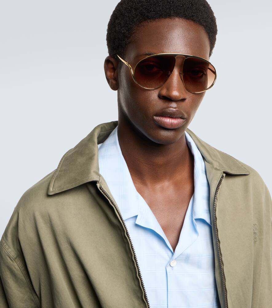 Основанная в 1846 году, компания Loewe неизменно предана искусству и ремеслу высочайшего качества. Солнцезащитные очки Signature, изготовленные в Италии, представляют собой переосмысление классического силуэта авиатор и отличаются элегантной металлической оправой золотистого оттенка.