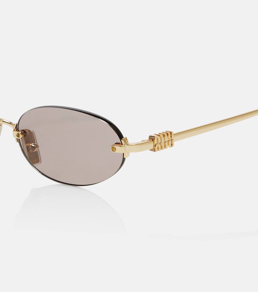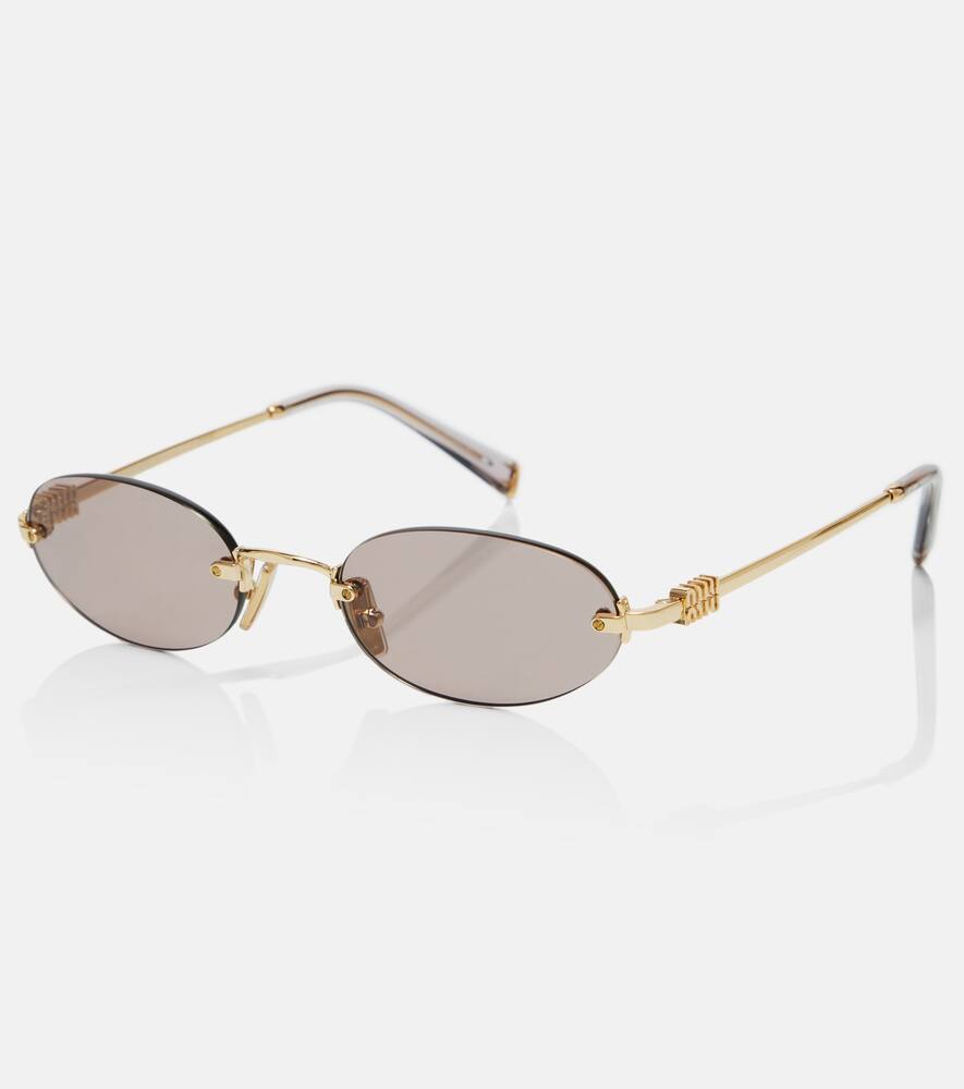 Miu Miu покорил мир своим прогрессивным подходом к дизайну и самовыражению. Эти солнцезащитные очки с логотипами на дужках имеют золотистую металлическую оправу и овальные линзы.