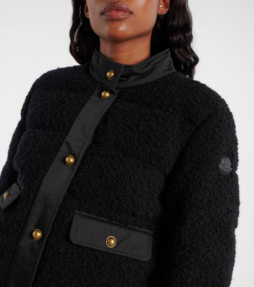 Стеганая куртка Blandy из твида с высоким воротником и карманами с клапанами. Весь пух Moncler, закупаемый исключительно у поставщиков, сертифицированных DIST, получен от гусей, выращенных на фермах, как побочный продукт пищевой промышленности.